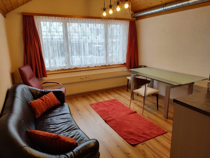 Die Wohnung befindet sich im Dorf, 3 Minuten vom Bahnhof entfernt. Einkaufsmöglichkeiten in 3–4 Minuten zu Fuss erreichbar. Wanderwege und Langlaufloipe in unmittelbarer Nähe.